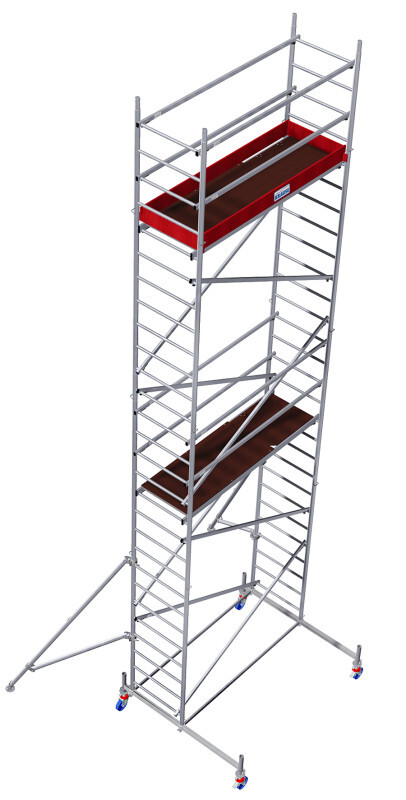 Bestehend aus: 6x Vertikalrahmen 2 m (Art.-No. 915078), 2x Vertikalrahmen 1 m (Art.-No. 915085), 2x Belagbühne 2,00 x 0,60 m mit