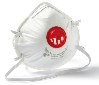 Feinstaubmaske mit Ausatemventil, FFP2, schützt gegen alle festen und flüssigen Partikel bis zum 10-fachen MAK bzw. TRK Wert von mitteltoxischen Stäuben und Rauch: wie z.B. Asbest, Chrom, Kupfer, Titanium, Hartholz, Schweißen und Löten.