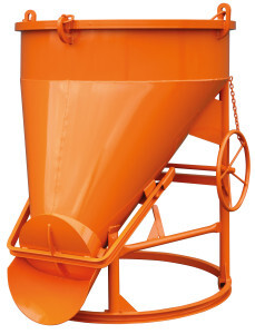 Standardmäßig mit angeschweißter Kette, optional mit Haken oder Bügel. Lieferbar von 150 l bis 1000 l.
