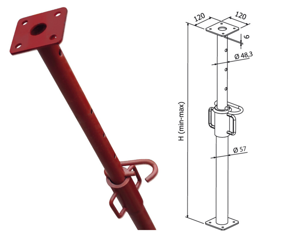 Industriedeckenstützen gemäß EN 1065. Schwere Ausführung für den harten Baustelleneinsatz. Spezielles, leichtgängiges und