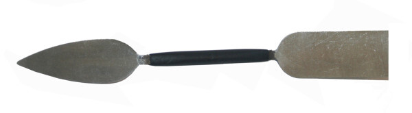 Aus Normalstahl, Griffteil Kunststoff überzogen. Blatt konisch geschliffen und poliert.
