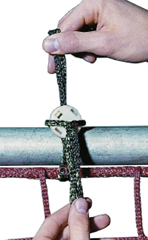 Seitenschutznetze können in der Regelausführung Masche für Masche an der Tragkonstruktion befestigt werden. Dies geschieht, indem das Gerüstrohr durch die Maschen gefädelt wird.