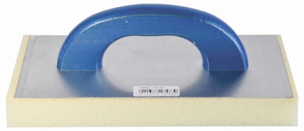 Mit starker Aluplatte mit Holzgriff und aufgeklebtem Polyätherbelag gelb.