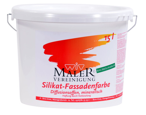 Wasserverdünnbare Fassadenfarbe auf Basis Kaliwasserglas. Hoch Wasserdampfdurchlässig. Anwendung: Außen für leicht füllende, deckende Anstriche auf mineralische und silikatische Untergründe. Nicht auf feuchte oder verschmutzte Untergründe aufbringen, nicht geeignet für horizontale oder geneigte Flächen mit Bewitterung. Bindemittelbasis: Kaliwasserglas, Acrylat-Dispersion. Technische Daten: - Glanz: Norm/Prüfvorschrift: EN 1062-1, Wert/Einheit: Matt, - Verbrauch: ca. 250-280 ml/m² für Zwischen- und Schlussbeschichtung bei glattem Untergrund.