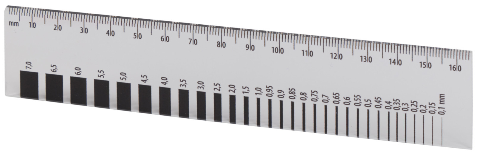 Zum Erfassen von Riss - oder Spaltmaßen, lt. mm/cm Lineal, Länge: 165 mm.