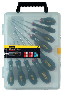 Set bestehend aus: - 5 Schlitz-Schraubendreher: 3x75 mm, 5x100 mm, 6x38 mm, 6x100 mm, 8x200 mm. - 5 PHILLIPS-Schraubendreher: PH0x75 mm, PH1x100 mm, PH2x38 mm, PH2x100 mm, PH3x150 mm. - 2 TORX-Schraubendreher: T10x100 mm, T20x100 mm. - 6...